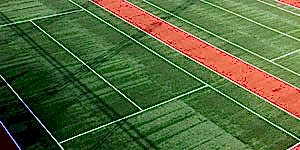 – Suni çim zeminde kum dolgu yapılır ve tenis kortu fırçalanır.